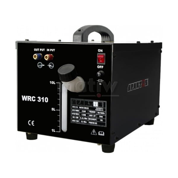 Chłodnica SPARTUS® WRC310 przeznaczona jest do chłodzenia uchwytów spawalniczych. Charakteryzuje się dużą wydajnością i 100% cyklem pracy. Pojemnik na płyn chłodzący ma pojemność 10l i wyposażony jest w miernik poziomu płynu. Chłodnica zasilana jest z sieci jednofazowej 230V.