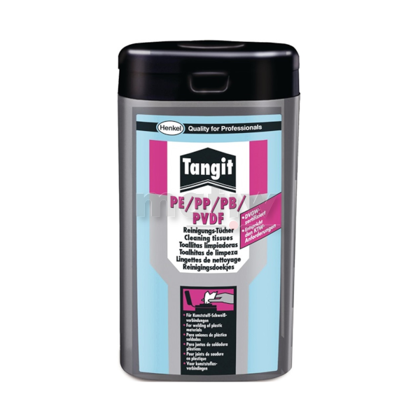 Chusteczki Tangit służą do oczyszczania i odtłuszczania powierzchni przed przystąpieniem do spawania tworzyw sztucznych (plastiku). Są nasączone środkiem czyszczącym na bazie alkoholu etylowego. Wytrzymałe na rozrywanie, można stosować przy instalacjach do wody pitnej, bardzo dobre właściwości czyszczące nie pozostawiają osadów i włókien.