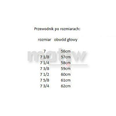 - rozmiar: 7 (obwód głowy: 56 cm)
