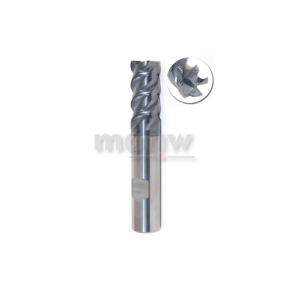 Frez trzpieniowy węglikowy walcowo-czołowy długi z łamaczem wióra do obróbki zgrubnej. Powlekany powłoką AlTiN ( azotek aluminium i tytanu) odporną na utlenianie i pozwalającą na frezowanie przy wysokich prędkościach skrawania. Sprawdzi się przy obróbce stali, stali nierdzewnej, żeliwa sferoidalnego itp. Produkt wysokiej wytrzymałości oraz dużej twardości charakteryzujący się wysoką odpornościa na zużycie. Przeznaczony do pracy na obrabiarkach o dużej stabilności mocowania.