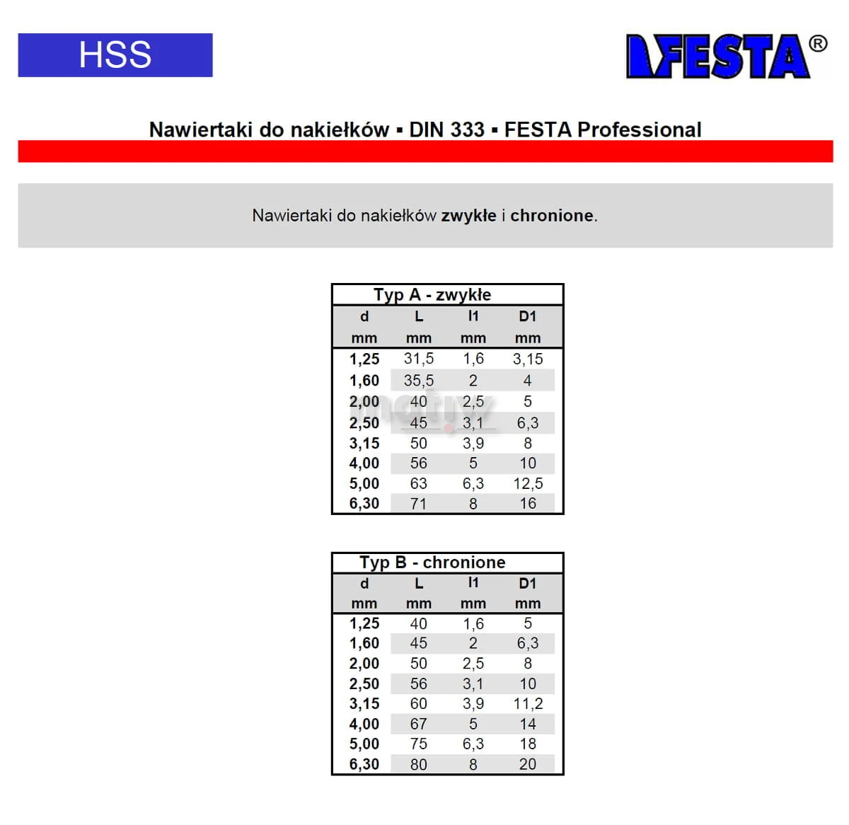 Nawiertak do nakiełków chroniony FESTA DIN 333 typ B 2,5 mm