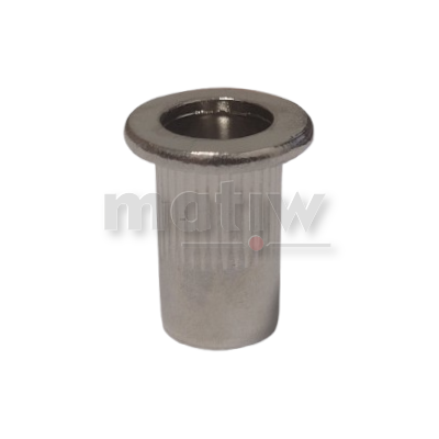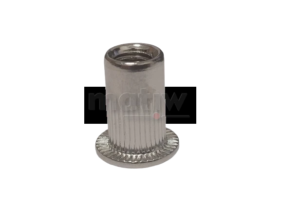 | NITONAKRĘTKA NIERDZEWNA WALCOWA RADEŁKOWANA A2 KOŁNIERZ PŁASKI M3 100szt. Nitonakrętka walcowa radełkowana ze stali nierdzewnej A2 z kołnierzem płaskim łączy dwie części za pomocą wkręcania i zapobiega luzowaniu się połączenia gwintowego pod wpływem wibracji i drgań. Główną zaletą nitonakrętek jest bardzo szybki i intuicyjny montaż, dzięki czemu są one idealne zarówno dla profesjonalistów, jak i do domowego użytku.To doskonała alternatywa dla tradycyjnych śrub i nakrętek. Nitonakrętka jest funkcjonalna, wytrzymała i daje pewność, że wykonane połączenia będą bezpieczne i mocne przez wiele lat. PARAMETRY |