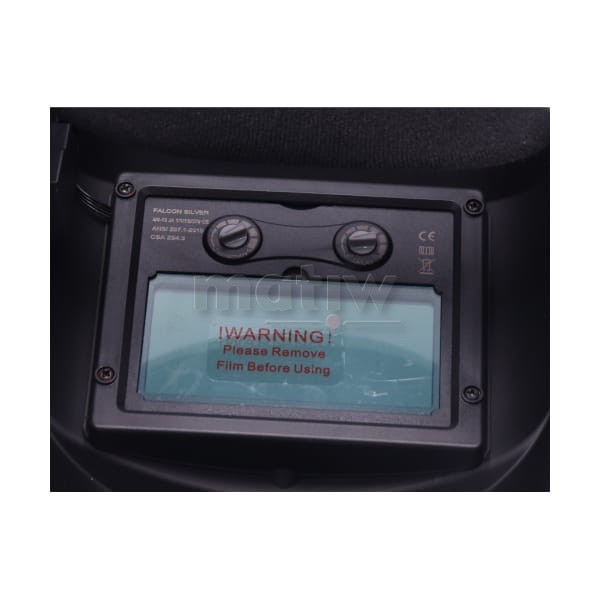 Przyłbica spawalnicza automatyczna Weldman Falcon True Color do spawania metodami MMA/MIG/TIG z funkcją szlifowania, wykonana jest z polimeru, a zasilana przez baterię i ogniwa solarne. Włączanie i wyłączanie odbywa się automatycznie. W chwili zapalenia łuku transparentny filtr w kasetce zaciemni się. Po wyłączeniu łuku ponownie rozjaśni się. Przyłbica zapewnia ochronę przed promieniowaniem UV/IR (ultrafioletowe/podczerwone) także kiedy filtr jest transparentny. Dopasowania przyłbicy do indywidualnych potrzeb należy wykonać za pomocą odpowiednich przepięć/pokręteł na w nagłowiu.