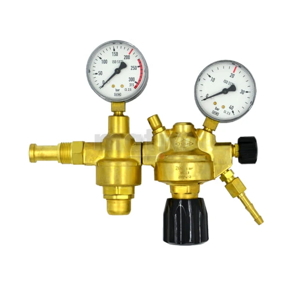 Reduktor butlowy dwustopniowy bezdźwigniowy o podwójnym układzie redukcji (obniżania) ciśnienia gazu. W pierwszym stopniu następuje obniżenie ciśnienia wlotowego do wysokości średniej, a w drugim stopniu ustalane jest wymagane ciśnienie wylotowe (robocze). Reduktory dwustopniowe w porównaniu z reduktorami jednostopniowymi charakteryzują się znacznie większą dokładnością utrzymania ciśnień wylotowych w całym zakresie opróżniania butli. Ponadto reduktory są bardziej odporne na zamarzanie przy dużych poborach gazu i niższych temperaturach otoczenia.
