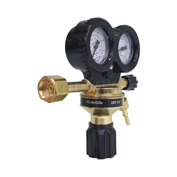 Jednostopniowy, do spawania metodą MIG/MAG. Reduktor z dwoma manometrami z regulacją ciśnienia wylotowego. Pozwala na obniżanie ciśnienia gazów pobieranych z butli do wymaganego ciśnienia wylotowego (roboczego) oraz zapewnia samoczynne utrzymanie tego ciśnienia na możliwie stałym poziomie niezależnie od zmian ciśnienia wlotowego. Reduktor wyposażony jest w zawór odcinający pozwalający na zamknięcie wypływu gazu z reduktora bez zmiany jego nastawy. Posiada także zawór bezpieczeństwa, przez który przy wzroście ciśnienia wylotowego ponad dopuszczalne zostaje wypuszczony nadmiar gazu z komory ciśnienia wylotowego na zewnątrz.