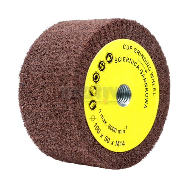 Ściernica garnkowa do obróbki wykończeniowej wykonana z włókniny. W włókninie ziarna ścierne są równomiernie rozmieszczone w przestrzennej sieci włókien nylonowych. Ażurowa budowa zapewnia doskonałe chłodzenie, niwelując ryzyko przegrzania i odbarwień na obrabianej powierzchni. Zapobiega zapychaniu się, co znacznie podnosi wydajność.