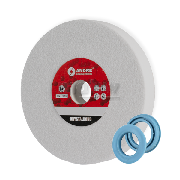 Ściernica płaska TYP 1 Crystalbond ze spoiwem szklanokrystalicznym oraz ziarnem 99A - elektrokorund szlachetny. Spoiwo szklanokrystaliczne posiada specyficzne właściwości, w tym, co szczególnie istotne, wyższą wytrzymałość mechaniczną w porównaniu z konwencjonalnymi spoiwami ceramicznymi.