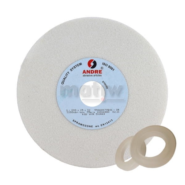 Ściernica płaska (Typ 1) ze spoiwem ceramicznym, z ziarnem 99A - Elektrokorund szlachetny (biały).