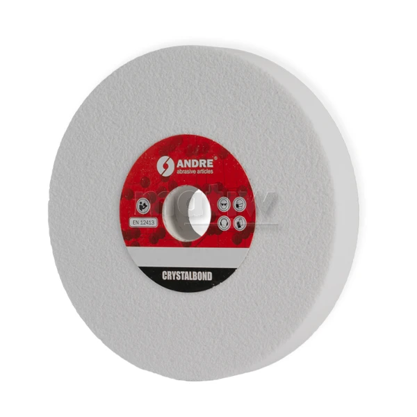 Ściernica płaska TYP 1 Crystalbond ze spoiwem szklanokrystalicznym oraz ziarnem 99A - elektrokorund szlachetny. Spoiwo szklanokrystaliczne posiada specyficzne właściwości, w tym, co szczególnie istotne, wyższą wytrzymałość mechaniczną w porównaniu z konwencjonalnymi spoiwami ceramicznymi.