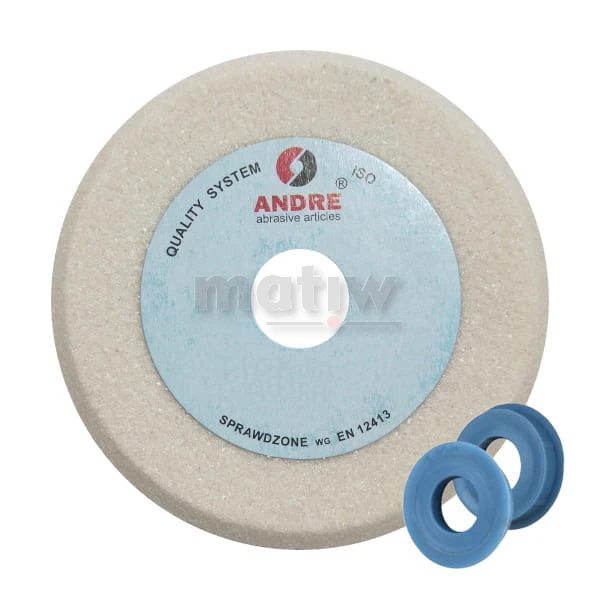 ŚCIERNICA PŁASKA KAMIEŃ ANDRE TYP 1C 150x8x20 99A 60 BIAŁA 99A60K7VE01 + TULEJKI REDUKCYJNE Z 20mm NA 10mm