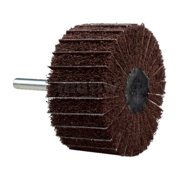 Ściernica trzpieniowa listkowa, wykonana z włókniny i płótna ściernego. W włókninie ziarna ścierne są równomiernie rozmieszczone w przestrzennej sieci włókien nylonowych. Ażurowa budowa zapewnia doskonałe chłodzenie, niwelując ryzyko przegrzania i odbarwień na obrabianej powierzchni. Zapobiega zapychaniu się, co znacznie podnosi wydajność. Przekładka z płótna ściernego pomiędzy listkami z włókniny umożliwia osiąganie większej wydajności obrabianego materiału zwiększenie żywotności narzędzia i uzyskane grubszego szlifu.