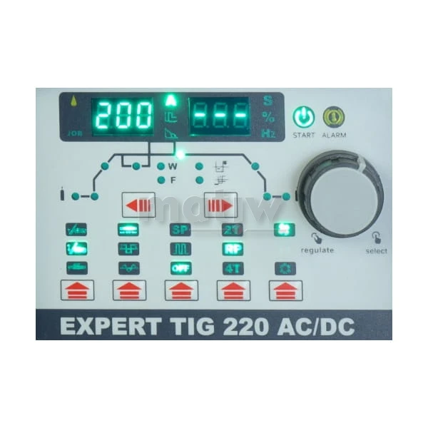 EXPERT TIG 220 AC/DC PULSE W jest przenośnym źródłem prądu, wykonanym w technologii IGBT, przeznaczonym do spawania metodą TIG i TIG PULS prądem zmiennym (AC), stałym (DC), oraz metodą MMA elektrodą otuloną prądem stałym (DC). Niewielkie rozmiary i waga sprawiają, że urządzenie doskonale sprawdza się zarówno w pracach warsztatowych jak i podczas prac terenowych. Urządzenie posiada tryby spawania: TIG DC, TIG DC PULS, TIG AC, TIG AC PULS, MMA AC, MMA DC. Funkcja TIG DC i TIG DC PULS stosowana jest do spawania stali nierdzewnej, stali węglowych i niskostopowych, miedzi oraz tytanu. Funkcja TIG AC i TIG AC PULS: umożliwia spawanie aluminium i jego stopów oraz mosiądzu. Funkcja TIG 2-LEVEL: regulacja prądu "2-level" umożliwia przełączanie pomiędzy wyższym i niższym poziomem prądu poprzez kolejne naciśnięcia przycisku w uchwycie spawalniczym. Funkcja TIG PUNKTOWE: umożliwia sczepianie cienkich materiałów. Dzięki regulacji parametrów spawania pulsacyjnego TIG PULS mamy wpływ na kształt spoiny i skupienie łuku. Spawanie pulsacyjne pozwala również zmniejszyć ilość ciepła dostarczanego do materiału i ma zastosowanie podczas spawania cienkich materiałów. Zajarzenie łuku następuje w trybie z bezdotykowym (HF) lub dotykowym (LIFT). Funkcja LIFT stosowana jest w podczas spawania w środowisku o wysokim ryzyku wpływu zakłóceń elektromagnetycznych na otoczenie. Zarówno przy zapłonie bezdotykowym HF jak i dotykowym LIFT mamy możliwość wyboru funkcji przycisku w uchwycie TIG pomiędzy pracą w trybie 2-takt lub 4-takt (blokada przycisku do długich spoin).