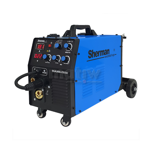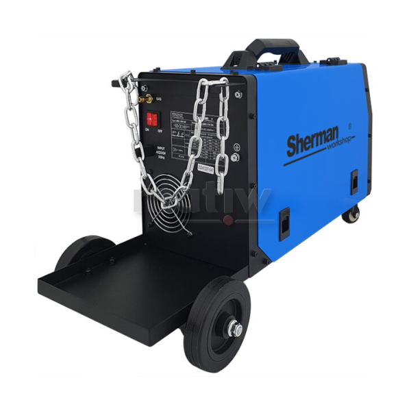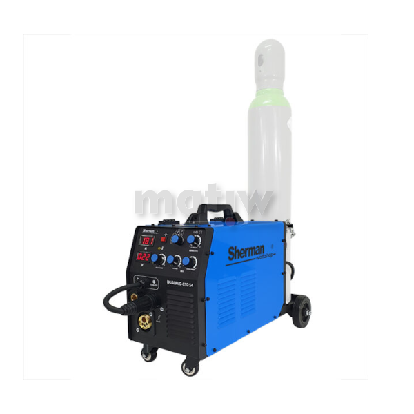 Spawarka MIG Sherman DUAMIG 210 S4 z kołami jezdnymi i półką na butlę