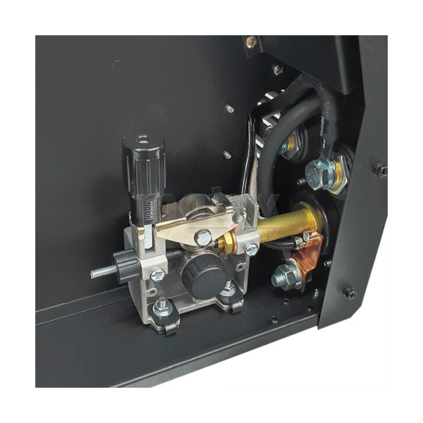 Urządzenie umożliwia spawanie w trybie 2-takt lub 4-takt, a także posiada możliwość regulacji indukcyjności wykorzystywanej przy lutospawaniu. Współpracuje ze szpulami drutu D100 (1kg) i D200 (5kg).