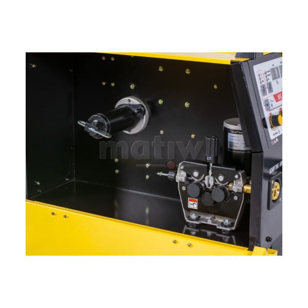 Urządzenie posiada płynną regulacje parametrów spawania, wyposażone jest w przeciążeniowy układ zabezpieczenia termicznego, zapobiegający nadmiernemu przegrzewaniu się. Spawarka wyposażona jest w profesjonalny 4-rolkowy podajnik drutu z gniazdem "euro złącze" co pozwala na podłączenie różnych typów uchwytów spawalniczych oraz wyjście na podgrzewacz gazu.