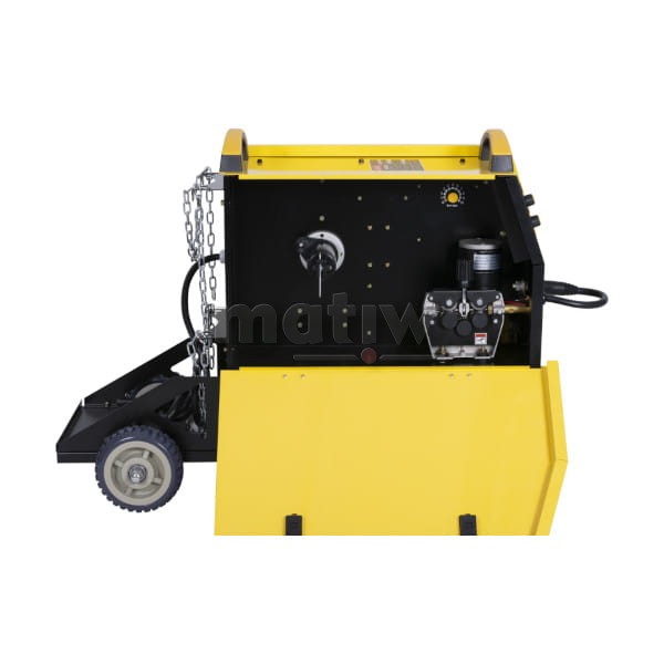 Urządzenie posiada płynną regulacje parametrów spawania, wyposażone jest w przeciążeniowy układ zabezpieczenia termicznego, zapobiegający nadmiernemu przegrzewaniu się. Spawarka wyposażona jest w profesjonalny 4-rolkowy podajnik drutu z gniazdem "euro złącze" co pozwala na podłączenie różnych typów uchwytów spawalniczych.