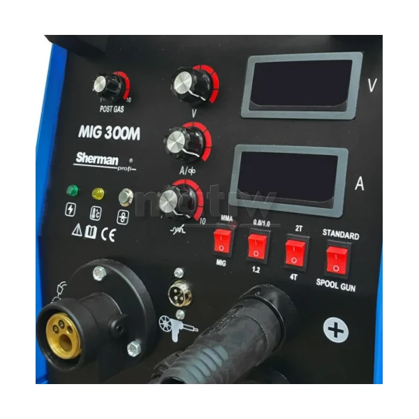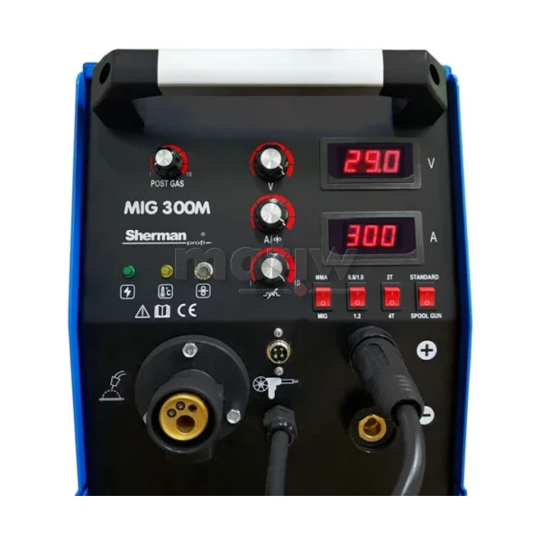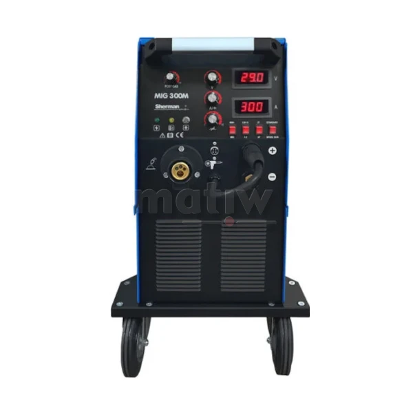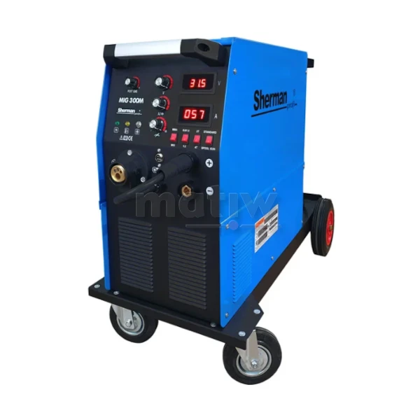 Spawarka MIG 300M to sprzęt drugiej generacji wykonany w technologii IGBT. Służy do spawania ręcznego stali i metali kolorowych w osłonie gazów ochronnych (metoda MIG/MAG) oraz elektrodą otuloną (metoda MMA). Może być także stosowany do spawania bezgazowego przy użyciu drutu proszkowego. Urządzenie posiada również możliwość spawania drutami o średnicy szpuli 100mm przy użyciu uchwytu Spoolgun.