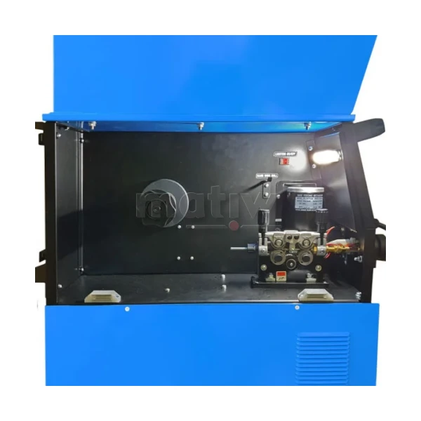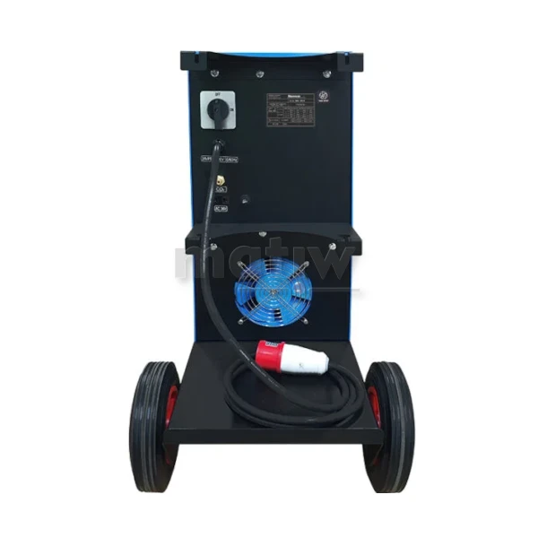 Urządzenie zasilane jest napięciem trójfazowym 3x400V. Wyposażony jest w profesjonalny 4-rolkowy podajnik drutu z płynną regulacją prędkości posuwu. Posiada również płynną regulację napięcia spawania przy spawaniu metodą MIG/MAG oraz prądu spawania przy metodzie MMA. Urządzenia wyposażone są w ZO/22/10/23/002, przełącznik 2T/4T oraz regulację indukcyjności przydatną przy spawaniu cienkich blach. Przed przeciążeniem chroni je zabezpieczenie termiczne. Współpracuje ze szpulami drutu K-200 (5kg) oraz K300 (15) kg.