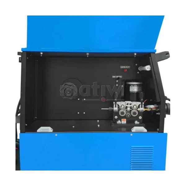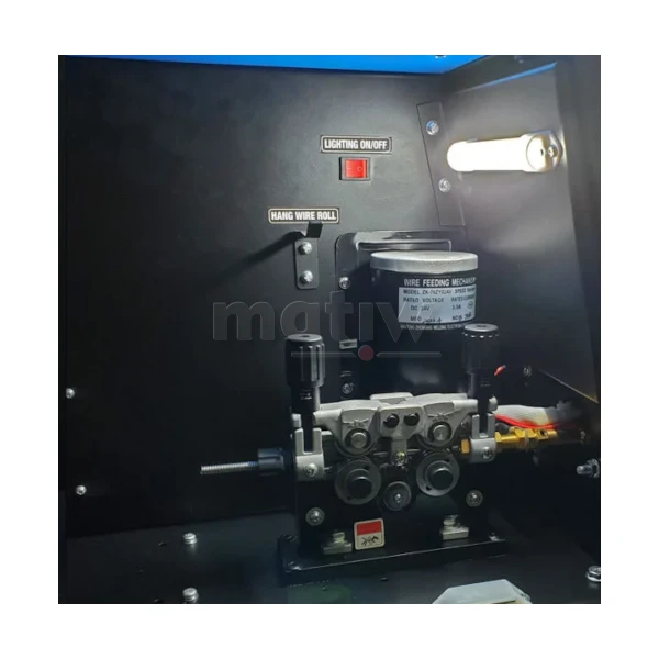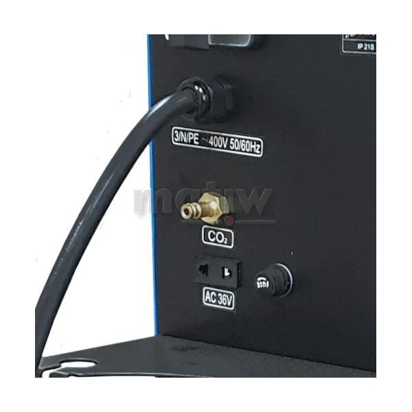 - Funkcje: 2T/4T, Fan Stop, Gniazdo zasilania AC 36 V, Opcja Spool Gun, Podajnik 4-rolkowy, Powypływ gazu MIG, Regulacja indukcyjności, Spawanie bez gazu, Sterowanie analogowe, Ustawienia manualne, Wyświetlacz LED