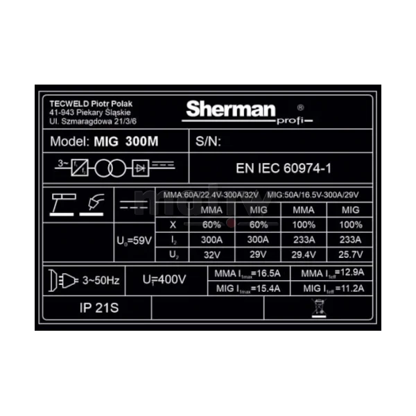 SPAWARKA MIGOMAT SHERMAN MIG 300M/4R MMA 400V 300A LUTOSPAWANIE