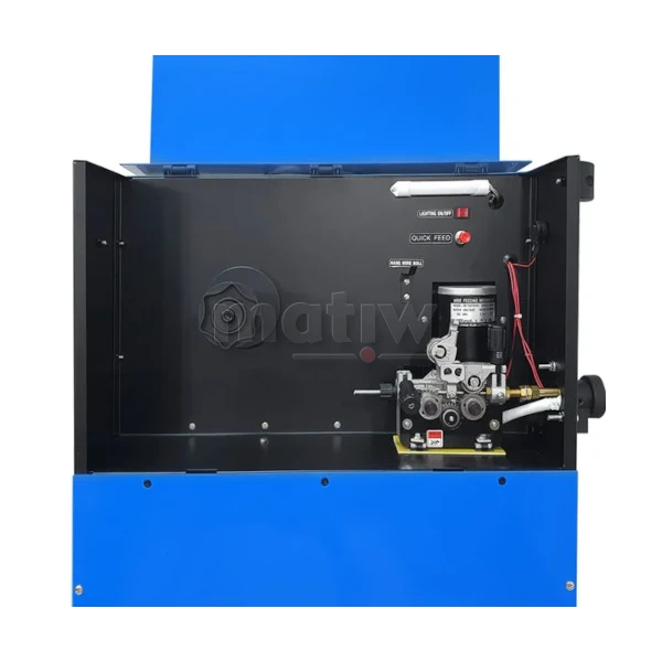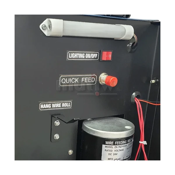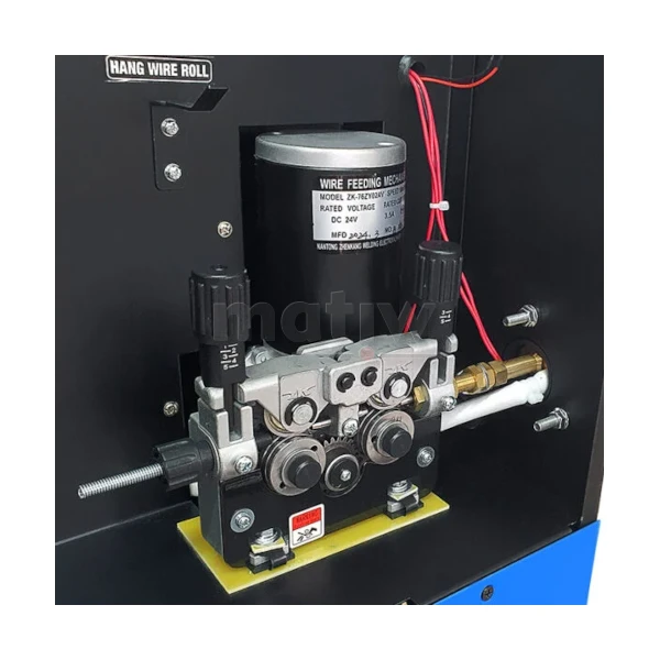 - Funkcje: 2T/4T, Fan Stop, Gniazdo zasilania AC 36 V, Podajnik 4-rolkowy, Powypływ gazu MIG, Regulacja indukcyjności, Spawanie bez gazu, Sterowanie analogowe, Ustawienia manualne, Wyświetlacz LED