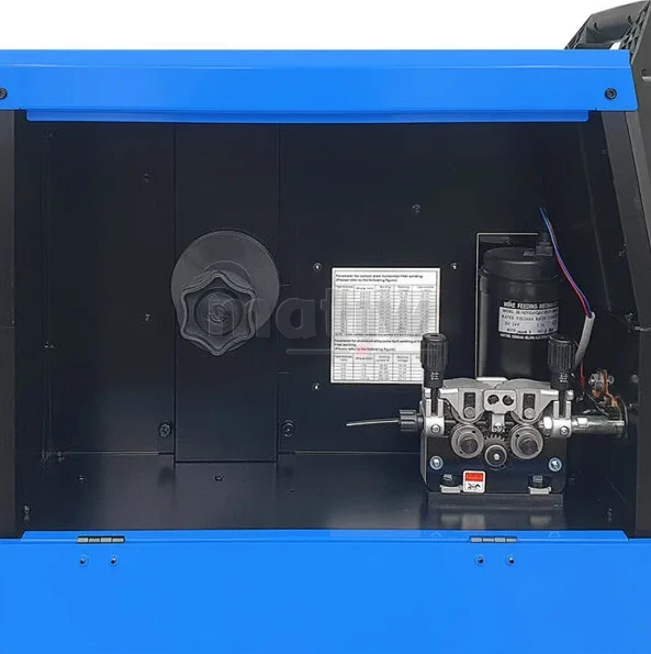 - Funkcje: 2T/4T, Arc Force, Fan Stop, Gas Test, Gniazdo zasilania AC 36 V, Hot Start, Mikrokontroler (MCU), Opcja Spool Gun, Podajnik 4-rolkowy, Podwójny Puls, Powypływ gazu MIG, Prędkość dojazdowa podajnika, Regulacja indukcyjności, Spawanie bez gazu, Sterowanie cyfrowe, Synergia stal węglowa, Szybki wysuw drutu, Ustawienia manualne, VRD, Wybór elektrody, Wyświetlacz LCD