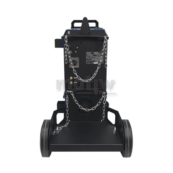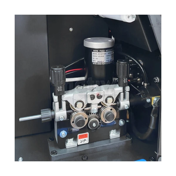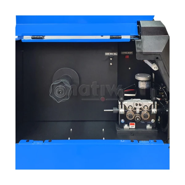 Spawarka wyposażona jest w 4-rolkowy podajnik drutu oraz funkcje Hot Start, Arc Force, VRD i Soft Start. Ponadto posiada wiele udogodnień ułatwiających pracę: funkcję Fan Stop wyłączającą wentylator przy niskim obciążeniu, oświetlenie komory podajnika, wieszak na rolki i uchwyt MIG, uchwyty na drut TIG, oświetlenie przestrzeni przed spawarką, przyłącze gazu na szybkozłącze R21.