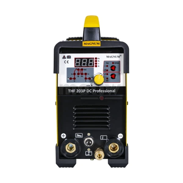 Urządzenie THF 203P PULS DC MAGNUM jest lekką, przenośną spawarką inwertorową przeznaczoną do spawania metodą TIG HF (z bezstykowym zajarzaniem łuku spawalniczego) prądem stałym DC. zapewnia doskonałą wydajność w spawaniu stali niestopowej, niskostopowej, wysokostopowej, tytanu oraz innych spawalnych metali i stopów. Urządzeniem można również spawać metodą MMA z wykorzystaniem topliwych elektrod otulonych.