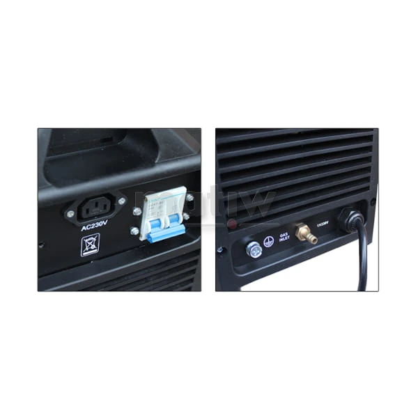- HF - urządzenie wyposażone jest w jonizator, który pozwala na bezstykowe zajrzenie łuku spawalniczego,