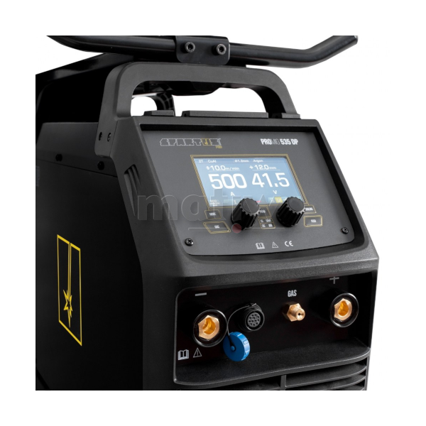 SPARTUS® ProMIG 535 DP to wysokiej klasy, nowoczesna spawarka inwertorowa, skonstruowana w oparciu o zaawansowaną technologię PWM i profesjonalne tranzystory IGBT. Umożliwia spawanie MIG / TIG DC oraz MMA, prądem o natężeniu do 500A. Zasilana jest z sieci trójfazowej 400V. Urządzenie daje szeroki wachlarz możliwości dla wyżej wymienionych metod łączenia metali.