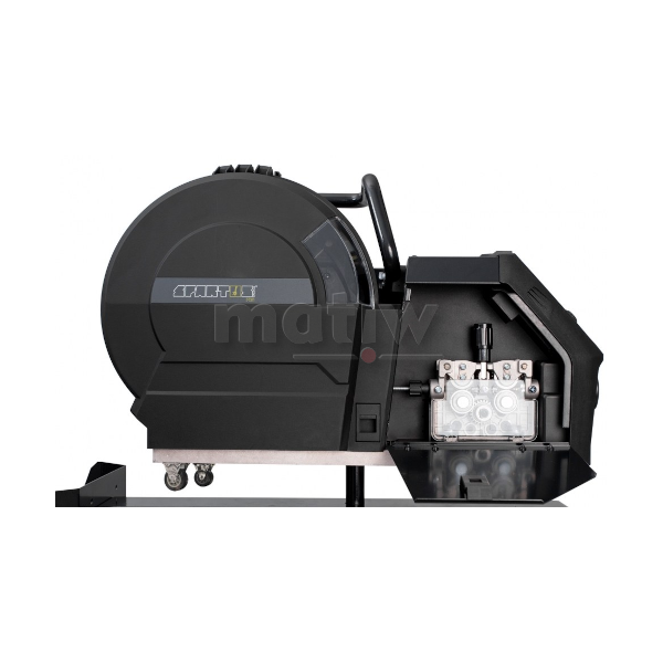 Wydzielony wysokiej klasy czterorolkowy podajnik, zapewnia stabilne podawanie drutu. Dodatkową zaletą jest również możliwość spawania uchwytem Spool Gun.