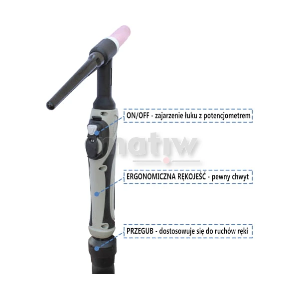 - uchwyt spawalniczy TIG typ SRT-26 z regulacją w rękojeści,