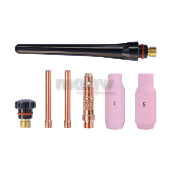 - akcesoria spawalnicze: korek krótki, korek długi, łącznik 2,0, tulejka izolacyjna 1,6/2,0/2,4, dyszę ceramiczną nr.4,5,6