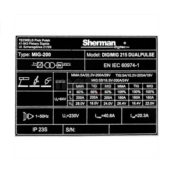 Spawarka inwerterowa synergia MIGOMAT MIG Sherman DIGIMIG 215 DUAL PULSE