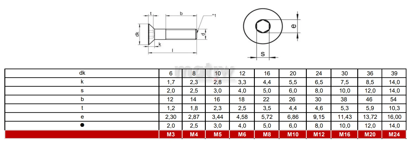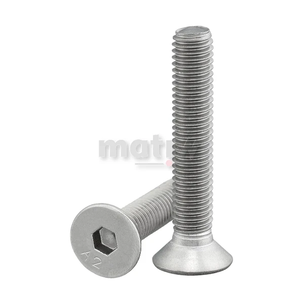 Śruba ze stali nierdzewnej A2 z łbem stożkowym z gniazdem na klucz imbusowy DIN 7991. Służy do łączenia konstrukcji stalowych.