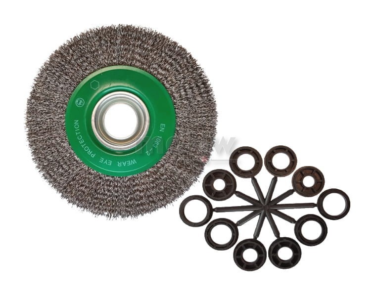 ŚCIERNICA DRUCIANA TARCZOWA FALISTA INOX 250x20x32 + KOMPLET REDUKCJI