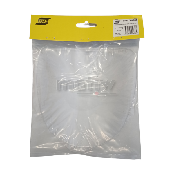 Duża przeźroczysta szybka ochronna wewnętrzna z poliwęglanu do przyłbicy ESAB G30, G30 AIR, G40, G40 AIR, G50 oraz G50 AIR. Odporna na uderzenia, nadaje się do szlifowania.