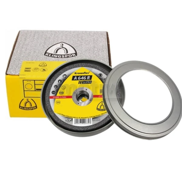 A 646 R Supra są to tarcze do cięcia stali INOX, nadają się do obróbki materiałów takich jak: stal czarna i stal szlachetna. Ponadto nie zawierają żelaza, siarki i chloru, tarcze wykonane są ze specjalnie spiekanego, samoostrzącego się elektrokorundu. Ziarno tego typu uzyskuje zawsze wysoką agresywność podczas cięcia stalowych materiałów, szczególnie pełnych przekrojów. Dzięki temu wszystkie profesjonalne prace mogą być sprawnie wykonywane. Doskonała jest również żywotność tego produktu, a także twardość. W celu zwiększenia odporności na potencjalne obciążenia boczne, tarcza ta jest wzmocniona siatką z włókna szklanego. Zdecydowanie poprawia ona stabilność.