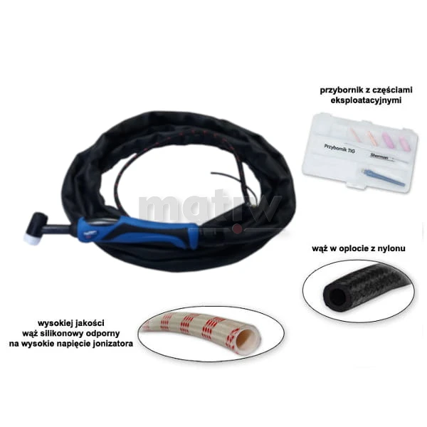 Uchwyt spawalniczy Sherman TIG T-17 Ergo ŁW-50 8 m