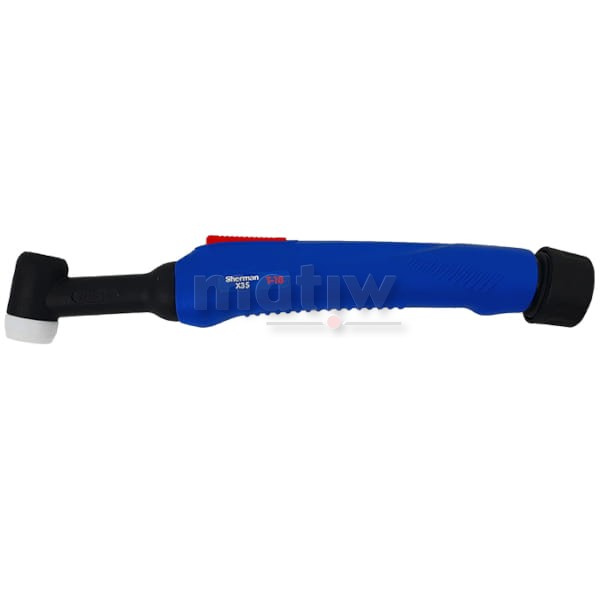 Uchwyt spawalniczy T-18 serii Sherman X35 (ze sztywną główką palnika) to uchwyt chłodzony cieczą do spawania metodą TIG (elektrodą nietopliwą). Przewody sterownicze nie posiadają wtyczek sterujących. Do każdego uchwytu dodawane są części eksploatacyjne zawierające: korek długi i korek krótki, dysze nr 4 i nr 5, łącznik prądowy, dwie tulejki zaciskowe.
