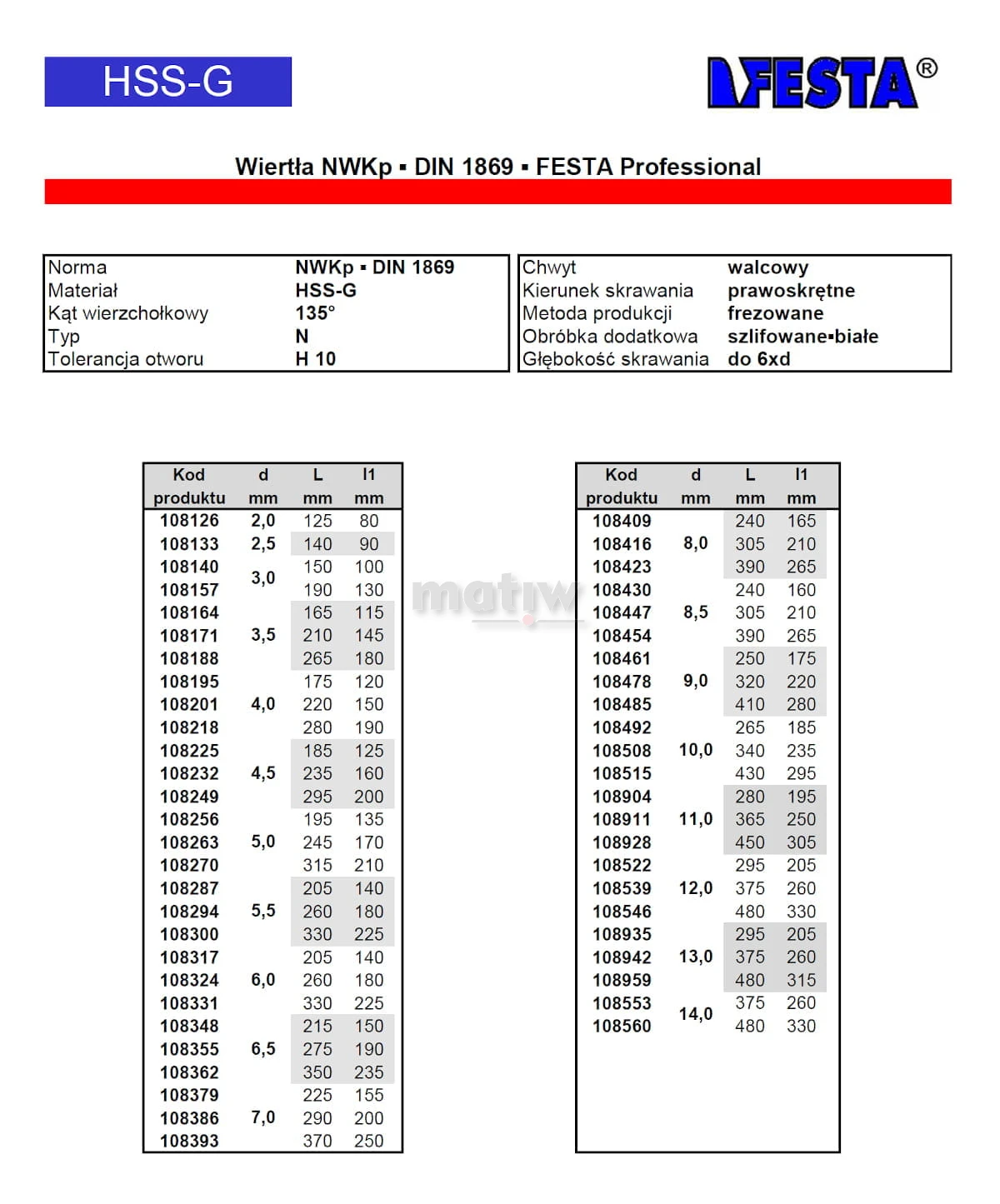 WIERTŁO BARDZO DŁUGIE NWKp DIN 1869 FESTA HSS SZLIFOWANE PRO