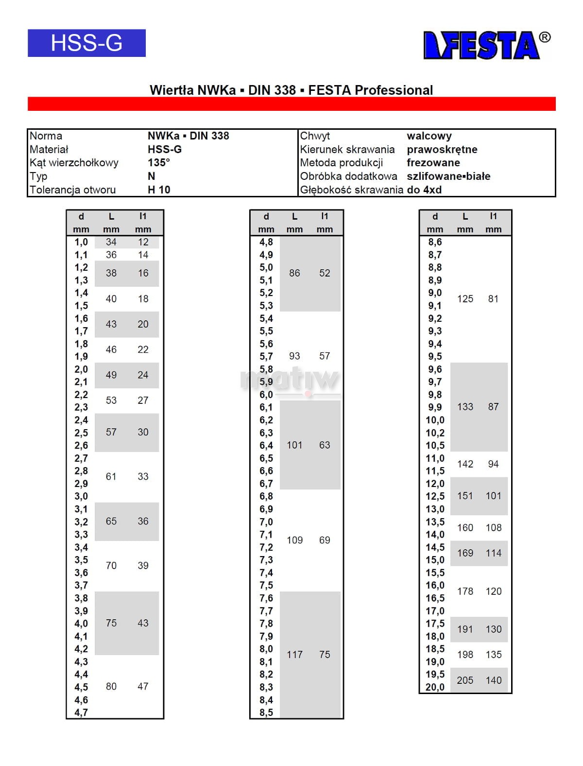 WIERTŁO NWKA DIN 338 FESTA HSS SZLIFOWANE PRO