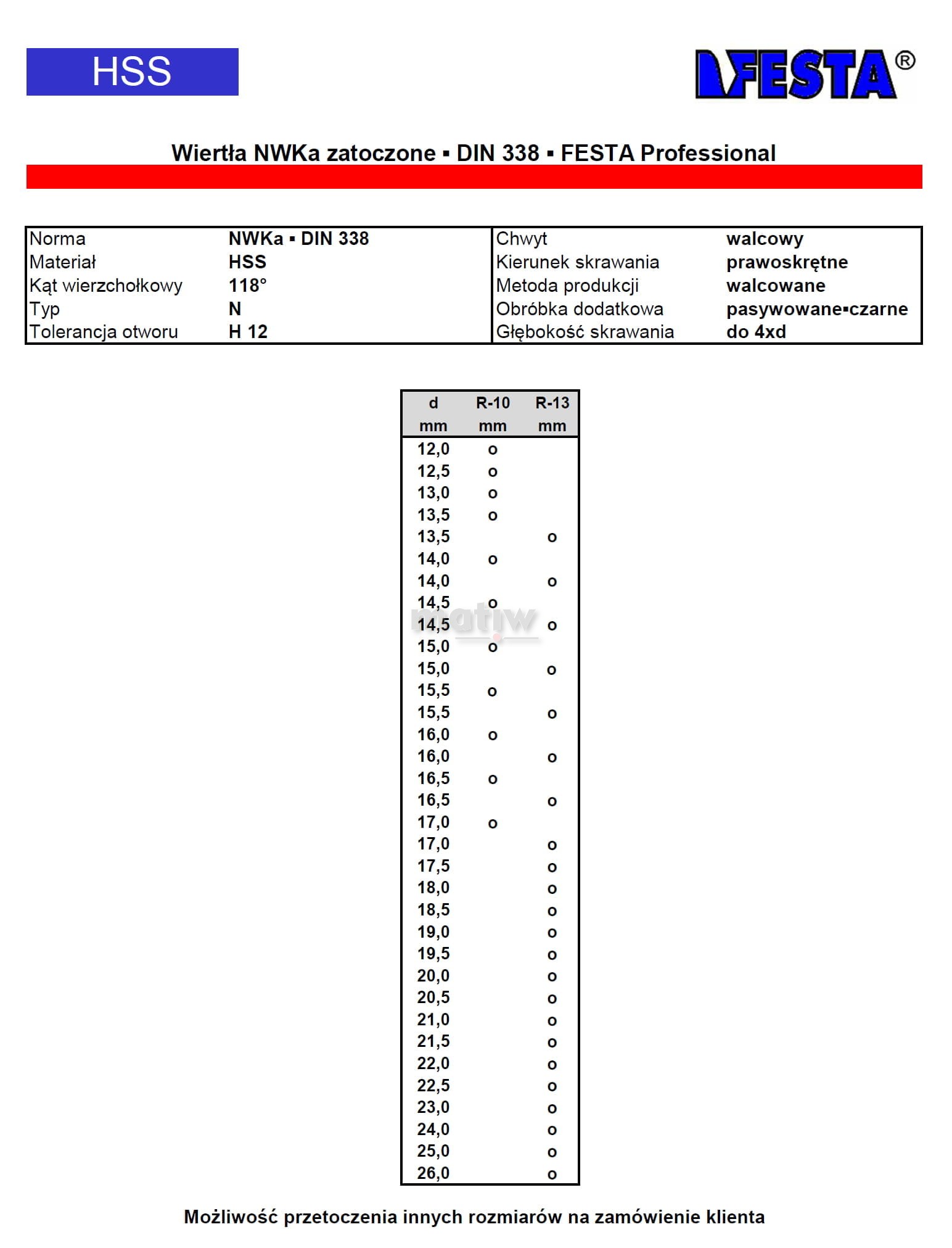 WIERTŁO NWKA DIN 338 FESTA HSS PROFESSIONAL PRZETOCZONE
