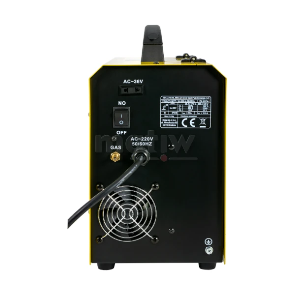 Urządzenie posiada płynną regulacje parametrów spawania, wyposażone jest w przeciążeniowy układ zabezpieczenia termicznego, zapobiegający nadmiernemu przegrzewaniu się. Spawarka wyposażona jest w 2-rolkowy podajnik drutu z gniazdem "euro złącze" pozwala na podłączenie różnych typów uchwytów spawalniczych oraz wyjście na podgrzewacz gazu.